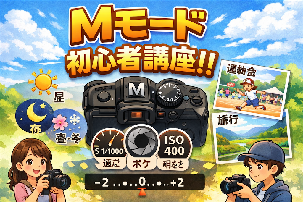 Mモード=SS(ブレ) × F(ボケ/ピント範囲) × ISO(明るさ補助)。